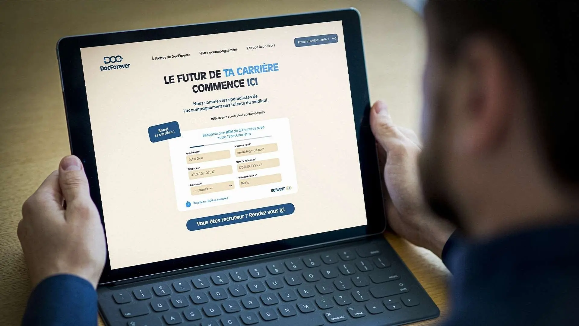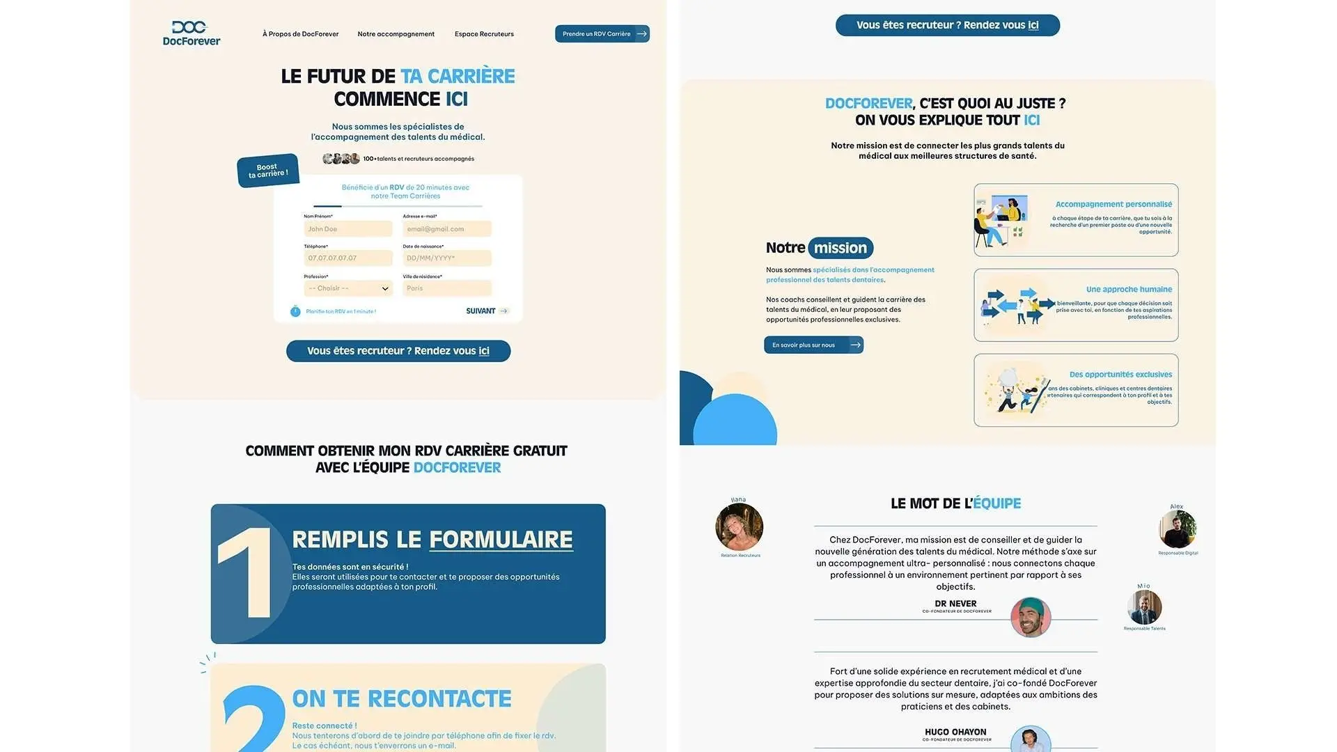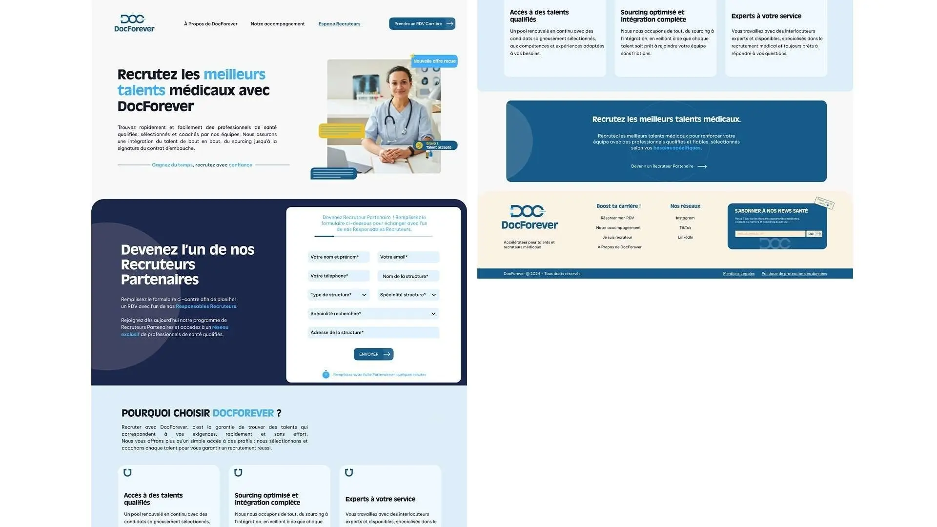 Backend-focused website development with complex form workflows for a French medical staffing platform.